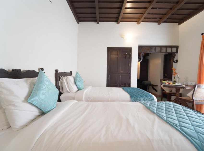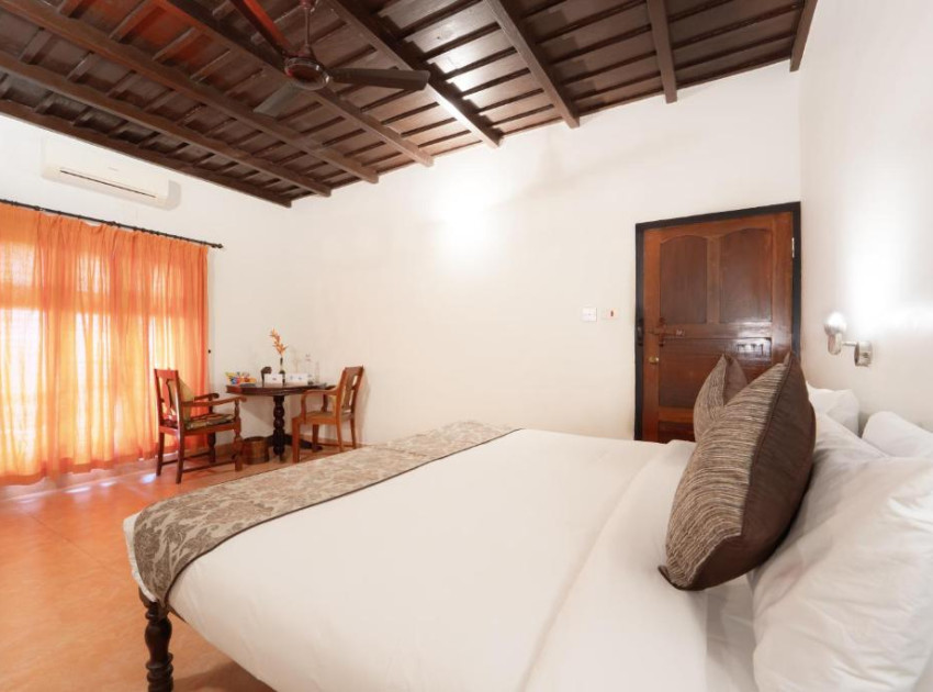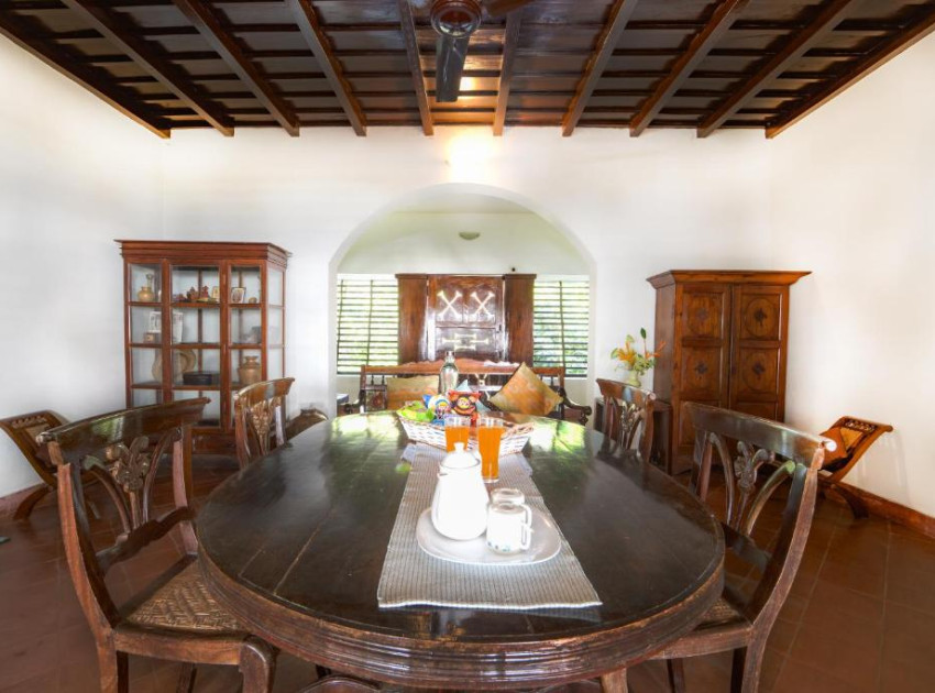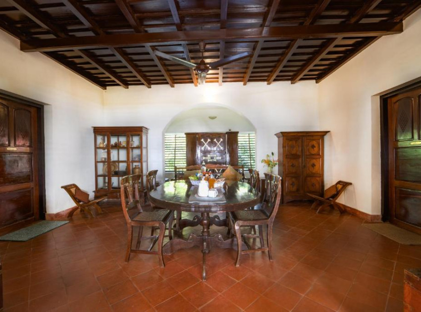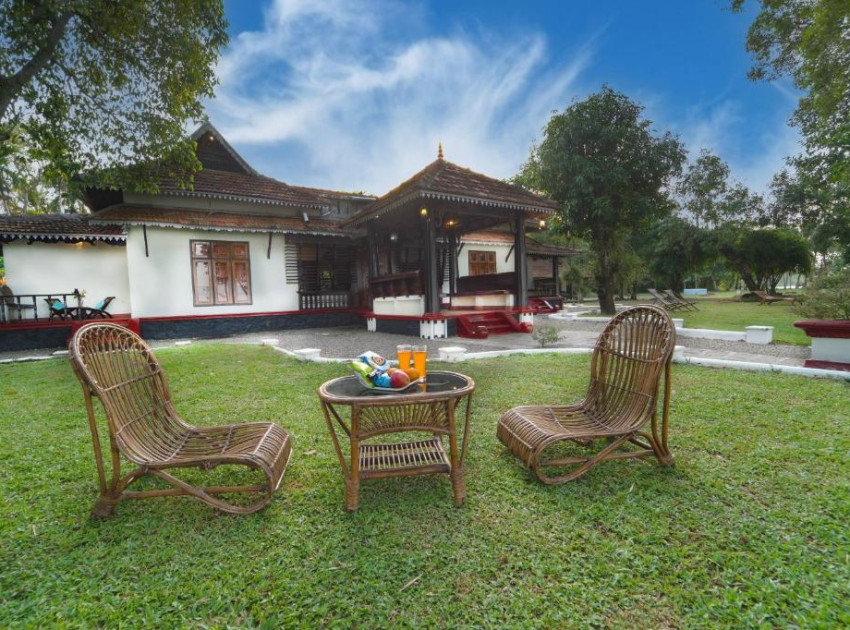 Elegant Accommodation: Alaya Stays Vembanad House Heritage Lakeside Villa with Garden in Alleppey offers a villa with four bedrooms and four bathrooms. The property features a spacious living room and a beautiful garden, complemented by free WiFi. Comfortable Amenities: Guests can enjoy air-conditioning, an outdoor fireplace, and an outdoor seating area. Additional facilities include a picnic area, full-day security, breakfast in the room, room service, and a tour desk. Convenient Location: Located 73 km from Cochin International Airport, the villa is close to attractions such as Mullakkal Rajarajeswari Temple (12 km), Alleppey Lighthouse (15 km), and Kumarakom Bird Sanctuary (21 km).