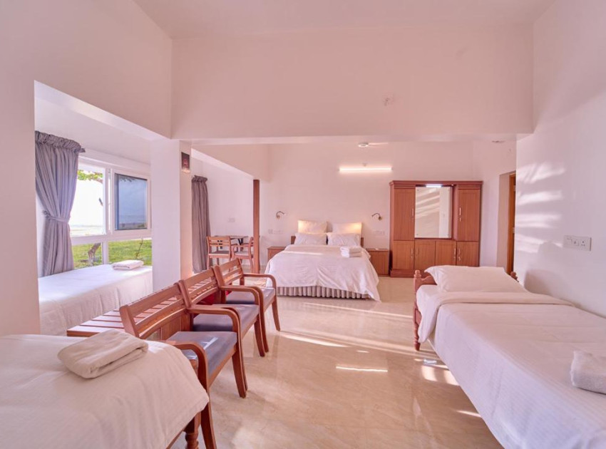 Alleppey Holiday Beach Resort in Alleppey offers a private beach area and beachfront access. Guests can relax on the terrace or enjoy the open-air bath. Free WiFi is available throughout the property. Rooms feature sea views, air-conditioning, private bathrooms, and modern amenities such as tea and coffee makers, refrigerators, and work desks. Additional facilities include a 24-hour front desk, daily housekeeping, and free on-site parking. Alleppey Beach is a 2-minute walk away, while Alleppey Lighthouse lies 1.2 km from the resort. Cochin International Airport is 83 km distant. Nearby attractions include Alappuzha Railway Station (2.2 km) and Mullakkal Rajarajeswari Temple (3.3 km). Boating is available in the surroundings.Couples particularly like the location — they rated it 9.3 for a two-person trip.