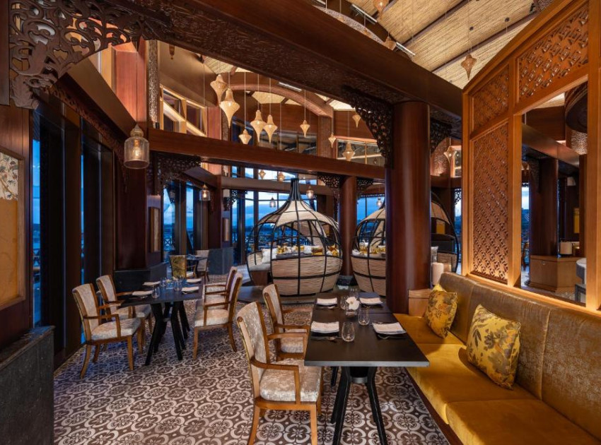 The family-friendly restaurant serves Mediterranean, Asian, and international cuisines in a modern and romantic ambience. Breakfast options include continental, American, and full English.
