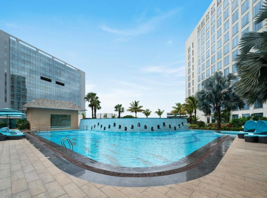 There's a swimming pool at Bengaluru Marriott Hotel Whitefield.