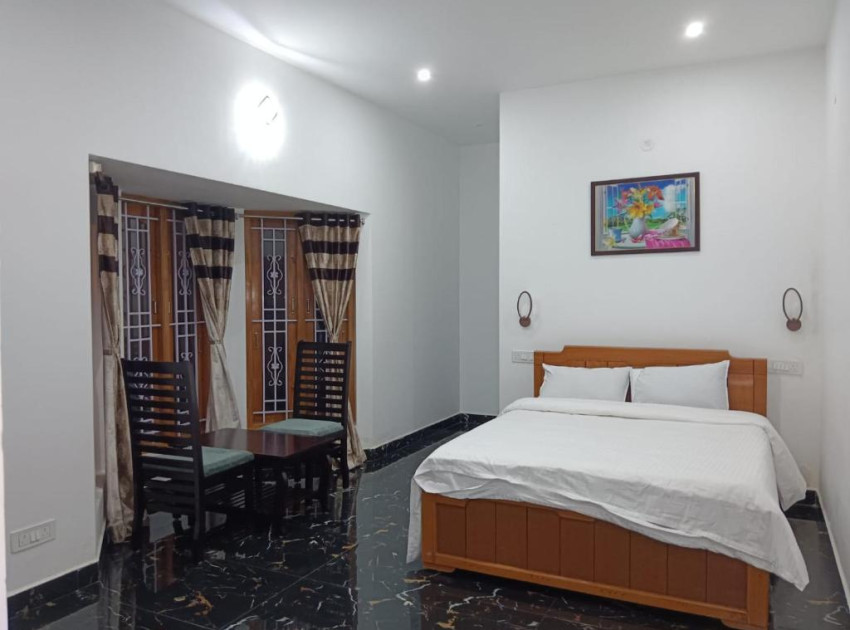 Spacious Accommodation: Chill Stay Resort Kodaikanal in Kodaikanal offers a 6-bedroom villa with six bathrooms. The property includes a living room and a fully equipped kitchen.Outdoor Spaces: Guests can relax in the garden or on the terrace. The terrace provides a perfect spot for outdoor dining and leisure.Modern Amenities: The homestay features free WiFi, a kitchenette, balcony, and dining area. Additional amenities include a refrigerator, TV, and kitchenware.Pet Friendly: The property welcomes pets, ensuring a comfortable stay for all guests. Local Attractions: Located 131 km from Madurai Airport, the villa is close to Chettiar Park (3.8 km), Bear Shola Falls (4 km), and Kodaikanal Lake (4 km). Other attractions include Bryant Park and Coaker's Walk.