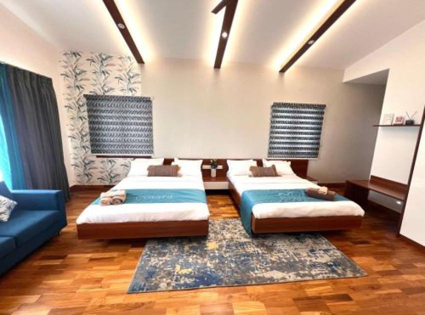 Evaara in Kodaikanal offers a spacious holiday home with four bedrooms and five bathrooms. Family rooms provide ample space for relaxation and comfort.