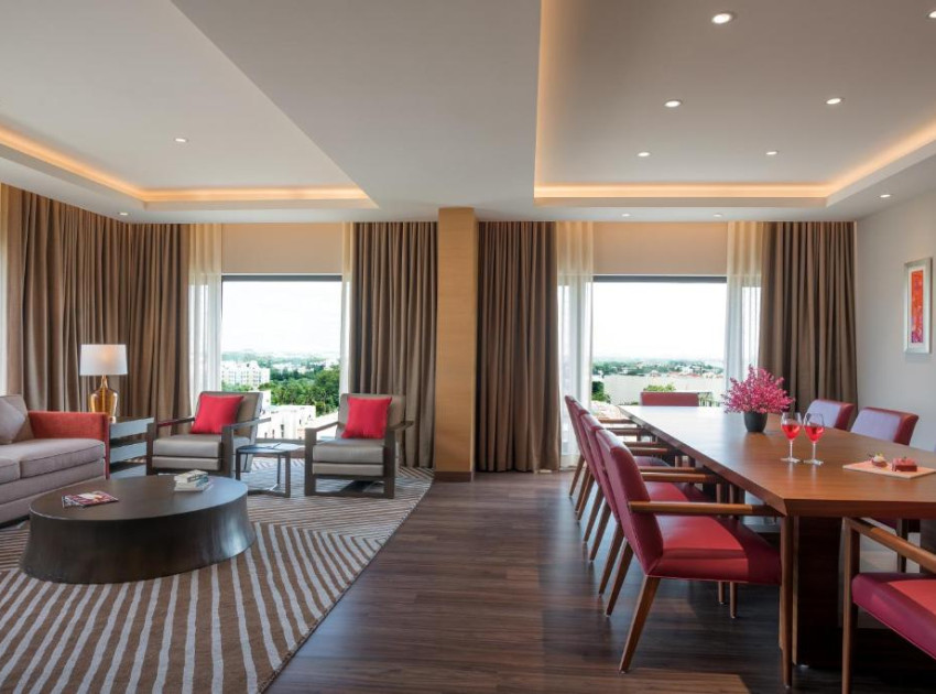 At Feathers, the best the Radha group of hotels has to offer, discover stunning views of the city while being pampered by our associates that cater to your every need. The hotel is located five minutes away from DLF and Chennai Trade Center and just 8 kilometers from Chennai International Airport. It is easily accessible from Sriperumbudur, Oragadam, Guindy Industrial area and SriCity.