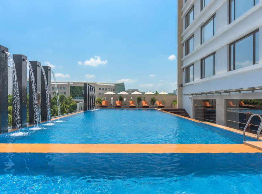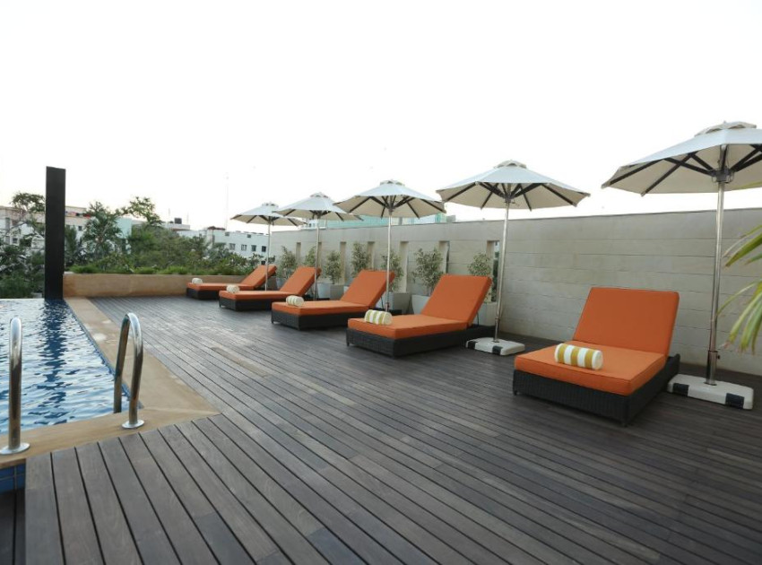 There's a swimming pool at Feathers- A Radha Hotel, Chennai.