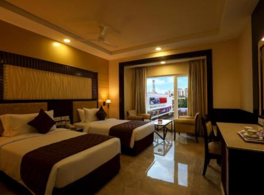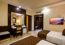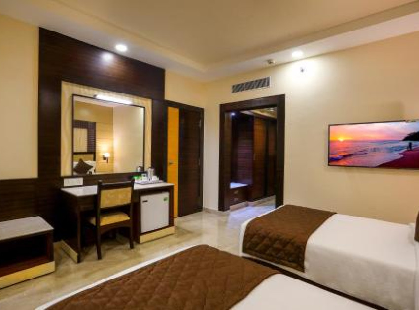 Hotel Aadithya in Chennai offers family rooms with air-conditioning, private bathrooms, and modern amenities. Each room includes a tea and coffee maker, minibar, and free WiFi.