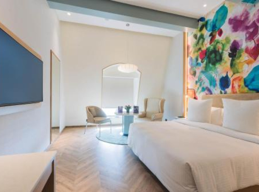 The hotel offers 195 spacious rooms with key features like a Smart TV, Video on demand, WiFi, Ironing board, 4 fixture bathroom. Few rooms are overlooking the golf course and some of the rooms also feature a bath tub. The suites feature an exclusive living area and dining area.