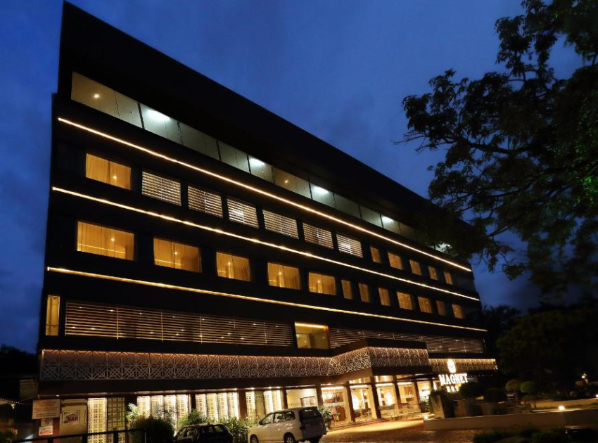 Magnet Hotel in Kannur offers a 5-star experience with adults-only rooms. Each room features a private bathroom, air-conditioning, and modern amenities. Guests can enjoy Indian cuisine at the family-friendly restaurant, which serves lunch and dinner in traditional, modern, and romantic settings. The bar provides a relaxing atmosphere for evening drinks.Located 25 km from Kannur International Airport, the hotel is 7 km from Kannur Railway Station and 26 km from Thalassery Railway Station. Free on-site private parking is available. The hotel offers a restaurant, bar, free WiFi, lift, 24-hour front desk, housekeeping, full-day security, and room service. Guests appreciate the attentive staff and excellent service