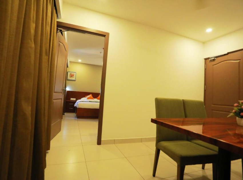 MAREENA in Kottayam offers family rooms with air-conditioning, private bathrooms, and free toiletries. Each room includes a TV, wardrobe, and carpeted or tiled floors.