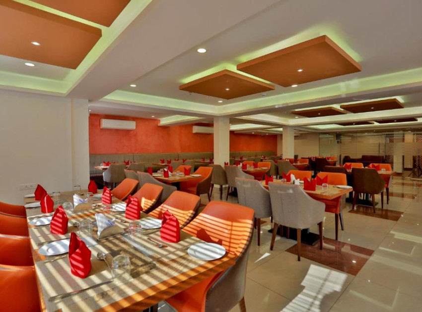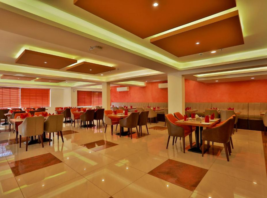 Guests can enjoy meals at the restaurant or unwind at the bar. The terrace provides a relaxing outdoor space.