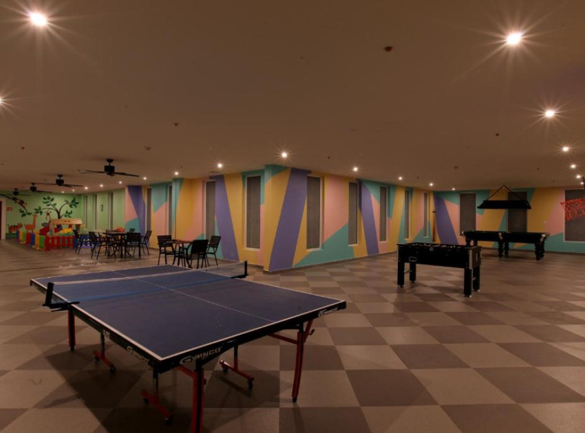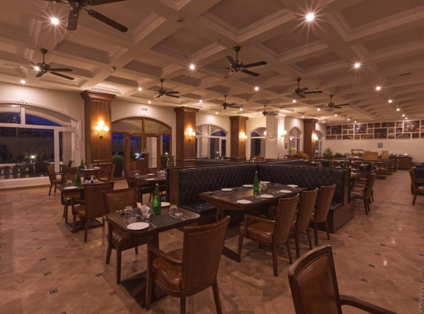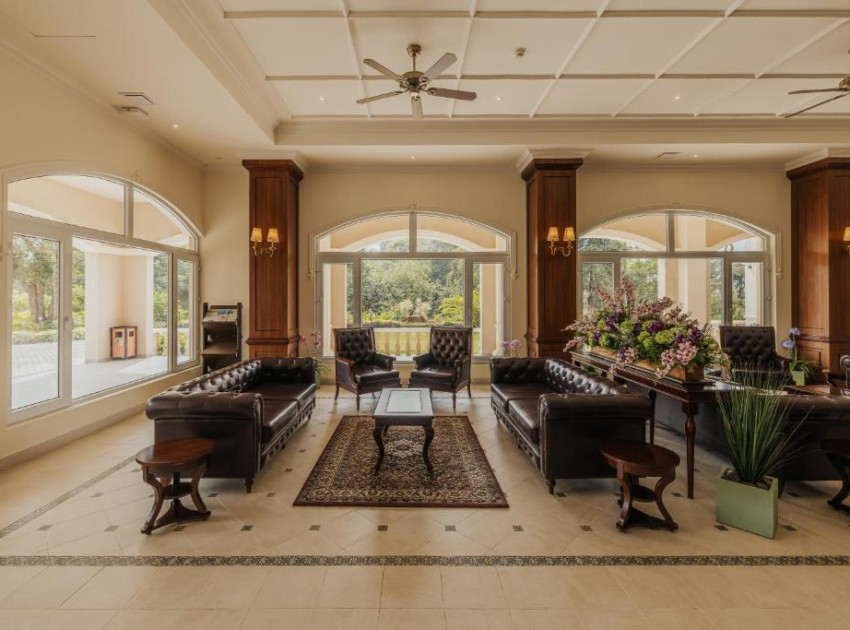 The resort features a family-friendly restaurant serving Chinese, British, Indian, and international cuisines. Additional amenities include a bar, pool bar, coffee shop, and outdoor seating areas. Activities include golfing, film nights, cycling, and horse riding.