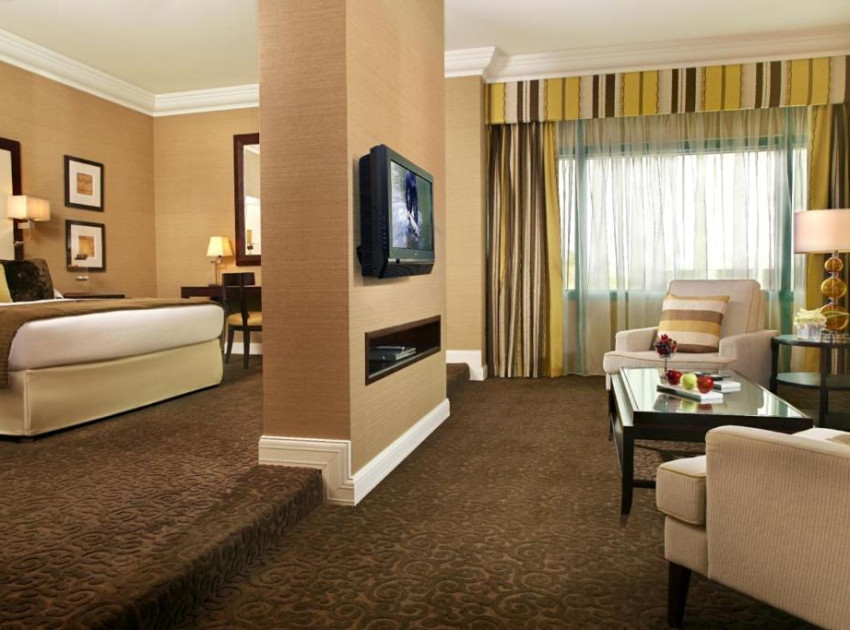The rooms at Mövenpick Grand Al Bustan are decorated with natural, soft colours. They are equipped with flat-screen TVs with satellite channels. Other amenities include work desk, tea/coffee facilities and a bathrobe with slippers. Some rooms offer direct access to the swimming pool.