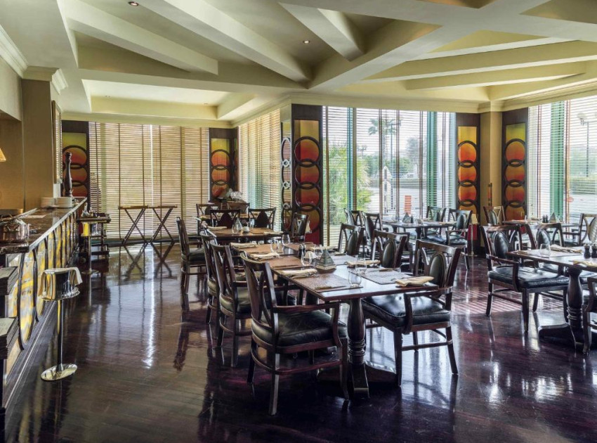 There is a restaurant at Mövenpick Grand Al Bustan.