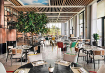The modern, family-friendly restaurant serves French and American cuisines with halal, vegetarian, vegan, and gluten-free options. Breakfast includes continental, buffet, and local specialities.