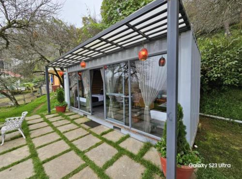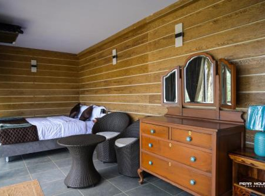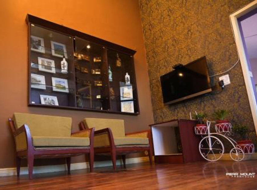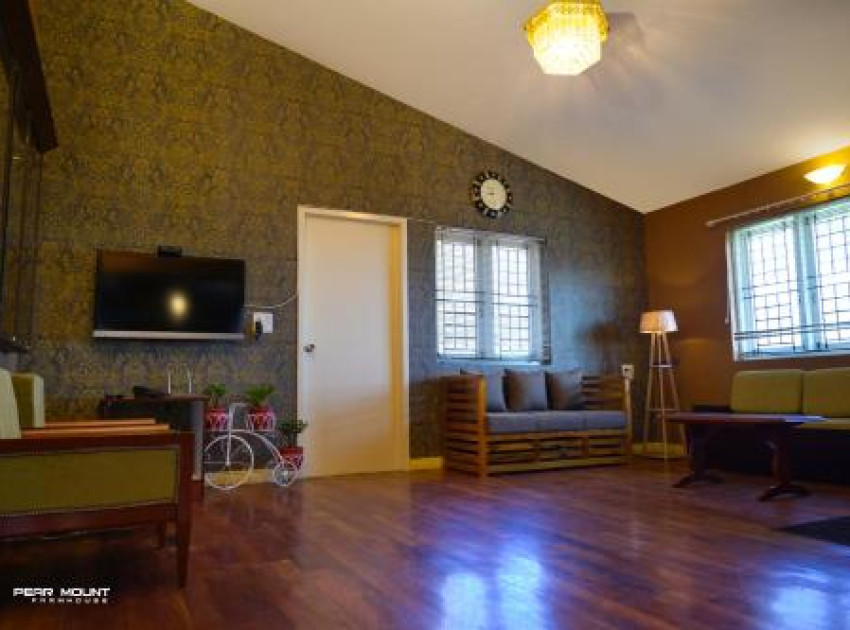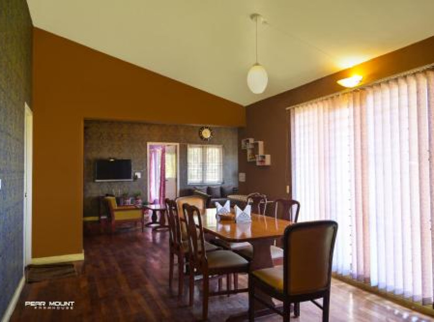 Pear Mount Farm House in Kodaikānāl offers a villa with three bedrooms and three bathrooms. The property features a spacious living room, a fully equipped kitchen, and a dining area. Guests can enjoy garden and mountain views from the outdoor seating and dining areas.