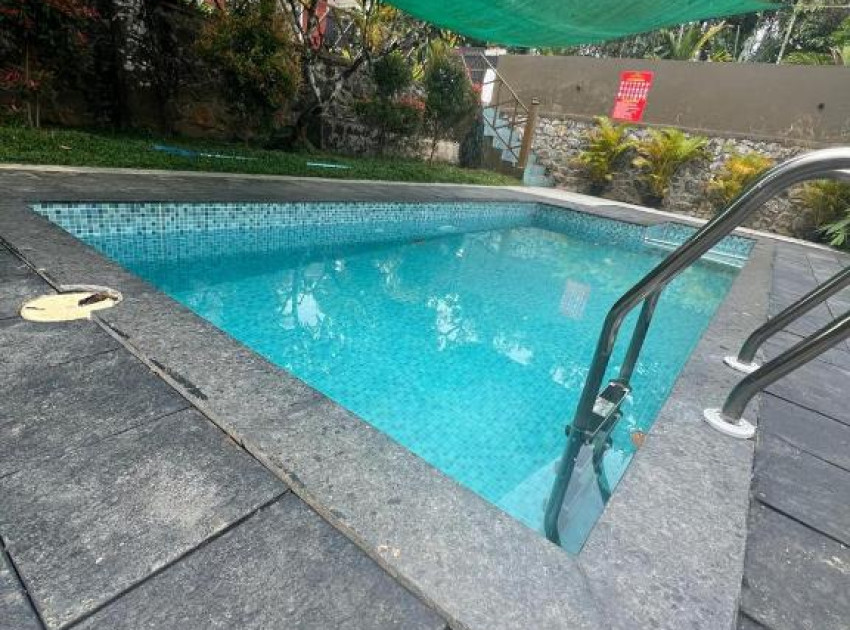 Royal homestay in Ambalavayal offers a villa with five bedrooms and five bathrooms. The property features a spacious living room, a fully equipped kitchen, and a private pool. Guests enjoy garden views from the balcony and a comfortable atmosphere.
