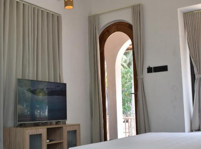 Thira Beach Home in Thriprayar offers direct beachfront access with stunning sea views. Guests can relax in the lush garden or take a dip in the open-air bath.The homestay features family rooms with private bathrooms, air-conditioning, and free WiFi. Additional amenities include a hot tub, work desk, and executive lounge access.A restaurant serves continental, à la carte, and vegetarian breakfasts. The child-friendly buffet caters to all ages, ensuring a pleasant stay for all guests.Valapad Beach is just a few steps away, while Guruvayur Temple lies 29 km from the property. Cochin International Airport is 54 km distant, providing convenient travel options.