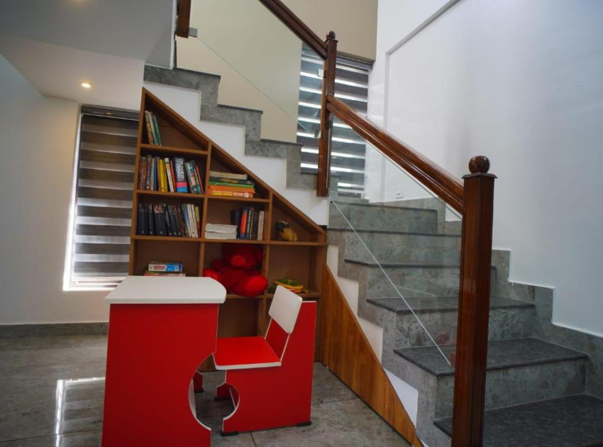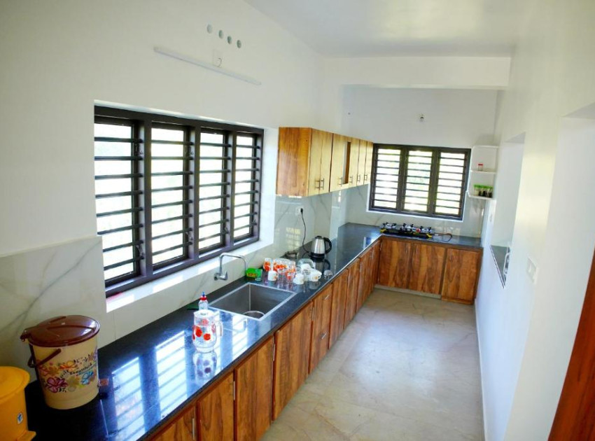 Vaishnavam Double Bedroom Villa in Thekkady offers a spacious villa with two bedrooms and three bathrooms. The property features a living room, dining area, and a fully equipped kitchen.Guests can relax in the garden or on the terrace, enjoying scenic views of the mountains and lush greenery. The terrace provides a perfect spot for outdoor dining and leisure.The villa includes a balcony, streaming services, and a work desk. Additional amenities include a coffee shop, family rooms, bicycle parking, and free on-site private parking.Located 147 km from Madurai Airport, the property is highly rated for its family-friendly environment and comfortable rooms.