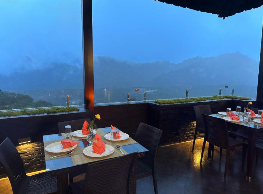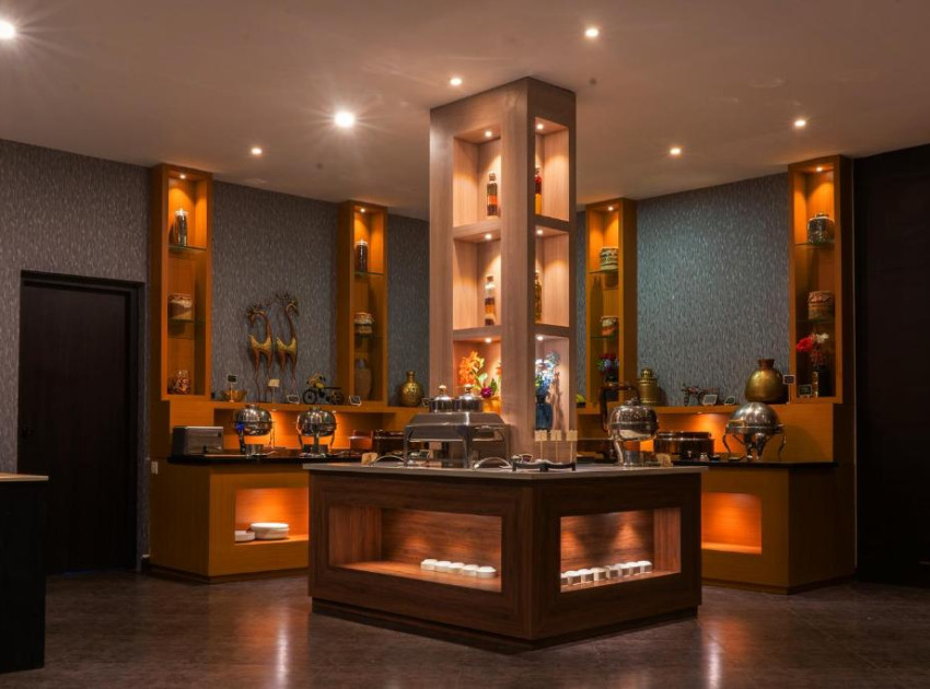 The family-friendly restaurant serves Chinese, Indian, local, and European cuisines. Breakfast options include continental and buffet with cheese and fruits. Dining areas include traditional, modern, and romantic settings.