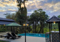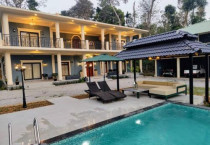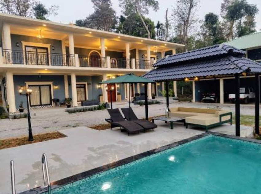 Villa Forever Coorg in Madikeri offers a three-bedroom villa with three bathrooms. The property features a spacious garden, terrace, and outdoor swimming pool. Guests enjoy free WiFi throughout the villa.